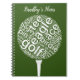 Personalised notebook with golf themed word cloud cover. Create a custom personalised golf inspired gift idea.