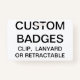 Custom printed personalised 3.38" x 2.13" LANYARD (Rope Necklace) BADGE Blank Template. Design, create, make your own. Your photo, image, text, logo, graphics in full colour edge-to-edge print on the front and the back - horizontal or vertical designs. Made of PVC plastic, durable, won't fade or tear. Available with Lanyard, Metal Clip, Retractable Clip, or Badge Only.