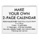Custom printed personalised LARGE TWO-PAGE CALENDAR with WHITE BINDING Blank Template - 11" x 14.25". Design, create, make your own. SINGLE OR 2 PAGE CALENDARS made of sturdy high quality paper, PERSONALIZE EVERY PAGE IN VIVID FULL COLOR PRINT, 2 sizes (single page) and 3 sizes (two page), 16 grid styles, 21 languages, 4 holiday templates. Any year & calendar length, any start and end dates, and 7 binding colour options. Best for the office and for home, for school, for a kid's bedrooms, and for Christmas gifts.
