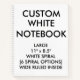 Custom printed personalised WIDE RULED NOTEBOOK with WHITE SPIRAL (6 Colour Options) Blank Template - 8.5" x 8.5" (60 sheets, 120 pages). Design, create, make your own. Your photo, image, text, logo, graphics in laminated full colour edge-to-edge print on the front and back covers of the notebook. 60 lb. durable text smooth paper, laminated front and back covers, CPSIA compliant. SHAPE OPTIONS: Rectangular, Square or Heart shape. SPIRAL COLOR OPTIONS: Black, White, Grey, Red, Blue or Green. PAGE DESIGN OPTIONS: Wide Ruled, College Ruled, Sketch, Practice, Sketch/Practice, Wide Ruled Sketch/Lined, Graph or Recipe (Heart shaped: Lined or Plain only). Best for school, college, kitchen, office, notes and ideas, and for birthday and Christmas gifts.