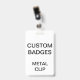 Custom printed personalised 3.38" x 2.13" VERTICAL METAL CLIP BADGE Blank Template. Design, create, make your own. Your photo, image, text, logo, graphics in full colour edge-to-edge print on the front and the back, horizontal or vertical. Made of PVC plastic, durable, won't fade or tear. Retractable, Metal Clip, Lanyard Necklace, or Just Badge.