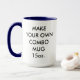 Custom printed personalised NAVY BLUE LARGE 15oz COMBO (COMBINATION) RINGER MUG Blank Template - 3.4” diameter x 4.5" high. Design, create, make your own. Colour inside and handle. Customise the outside with photo, text, pattern, monogram, image. Strong, ceramic construction. Microwave and dishwasher safe. Meets or exceeds FDA requirements for food and beverage safety.