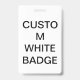 Custom printed personalised 2.13" x 3.38" PORTRAIT BADGE Blank Template. Design, create, make your own. Your photo, image, text, logo, graphics in full colour edge-to-edge print on the front and the back, horizontal or vertical. Made of PVC plastic, durable, won't fade or tear. Retractable, Metal Clip, Lanyard Necklace, or Just Badge. Best for office and business identity use, expos, exhibitions, conferences and corporate events.