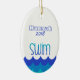 Light blue, dark blue and teal custom, personalised ornament for the swimmer.
