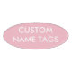 Custom printed personalised 3" x 2" OVAL NAME TAG with EXAMPLE OF PINK BACKGROUND PRINT Blank Template. Design, create, make your own. Your photo, image, text, logo in vibrant edge-to-edge full colour AcryliPrint®HD print. Quality magnetic back fitting that won't leave a tear in clothes like a pin tag might. Made of ultra-durable, scratch-proof acrylic, UV resistant and waterproof. Available in Oval, and Small or Large Rectangle shapes.