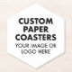 Design, create, make your own paper coasters from a template or blank. The ideal customisable, personalised party essentials for Christmas, wedding, retirement, anniversary, a birthday, baby shower, bridal shower, or other special occasion. Customise with a photo, logo, pattern or design, and add text. Also great for business events and corporate outdoor event such as a festival, marquee event, a fete, annual fair or garden party. Add your logo and branding for a bar, hotel, private members' club, golf club, cigar lounge, restaurant, coffee shop or food truck.