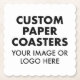 Design, create, make your own paper coasters from a template or blank. The ideal customisable, personalised party essentials for Christmas, wedding, retirement, anniversary, a birthday, baby shower, bridal shower, or other special occasion. Customise with a photo, logo, pattern or design, and add text. Also great for business events and corporate outdoor event such as a festival, marquee event, a fete, annual fair or garden party. Add your logo and branding for a bar, hotel, private members' club, golf club, cigar lounge, restaurant, coffee shop or food truck.