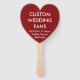 Custom printed personalised 6" RED HEART WEDDING FANS (sets of 10) Blank Template. Design, create, make your own. Your wedding photo, image, message, text, bride and groom names, logo, graphics, in full colour print individually designed on both sides of the fan. 5.75" diameter. Available in white and ecru cardstock (customise to any colour). Simple assembly required - wood handles and 4 glue dots per fan included (available pre-assembled for an upcharge). Available Round, Heart shaped, Paddle or Rectangle.