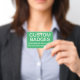 Custom printed personalised 3.38" x 2.13" RETRACTABLE CLIP BADGE Blank Template (with SEA GREN Background - change to any colour, front and back). Design, create, make your own. Your photo, image, text, logo, graphics in full colour edge-to-edge print on the front and the back. Made of PVC plastic, durable, won't fade or tear.
