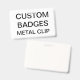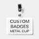 Custom printed personalised 3.38" x 2.13" HORIZONTAL METAL CLIP BADGE Blank Template. Design, create, make your own. Your photo, image, text, logo, graphics in full colour edge-to-edge print on the front and the back, horizontal or vertical. Made of PVC plastic, durable, won't fade or tear. Retractable, Metal Clip, Lanyard Necklace, or Just Badge.