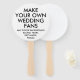 Custom printed personalised 5.75" ROUND WHITE WEDDING FANS (sets of 10) Blank Template. Design, create, make your own. Your wedding photo, image, message, text, bride and groom names, logo, graphics, in full colour print individually designed on both sides of the fan. 5.75" diameter. Available in white and ecru cardstock (customise to any colour). Simple assembly required - wood handles and 4 glue dots per fan included (available pre-assembled for an upcharge). Available Round, Heart shaped, Paddle or Rectangle. Best for weddings, but also great for a Sweet 16, Quinceanera birthday, or any hot, summer or outdoor event, and for corporate and business marketing or promotional use.