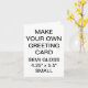 Custom printed personalised SMALL SIZE 4.25" x 5.5" PORTRAIT SEMI-GLOSS (PHOTO) GREETING CARD Blank Template. Design, create, make your own. Your photo, image, text, logo, graphics in full colour CMYK print on each side of the card - inside and out . Printable area on the back of the card is 5" x 7". Standard white envelopes included. SEMI-GLOSS: A thin, smooth, bright white paper with semi-gloss finish designed for photo printing with the optimal colour vibrancy. 40% recycled post-consumer content. Made and printed in the USA. Best for wedding, birthday, anniversary, retirement, get-well-soon, and Christmas cards.