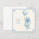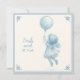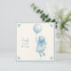 Cute square card featuring a pencil drawing of a little girl in a frilly dress floating under a balloon in the style of Delft ceramic tiles. The text is fully personalizable. Perfect for a new baby's birth's annoucement card!