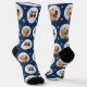 Custom Pet 2 Photo Navy Blue Paw Print Socks
