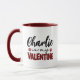 Custom Pet Name Dog, Cat Valentine's Day Pet Gift Mug. Cute Funny Valentine's Day humour. Letter names print gift for dog dad, dog mum or other pet parents and siblings. Customise name, add text or upload pet photo, change text and content to make it personalised.