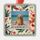 Custom Pet Name Photo Holly Berries Holiday Metal Ornament