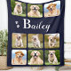 Custom Pet Photo Collage Monogram Name Dog Lover Fleece Blanket