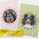 Destei's personalizable pet photo template design featuring some dog paw prints on the edges and a personalizable text area on the top. The photo is placed in the middle in a round shape together with a thin black border. You can change the colour of the paw prints and the text to any other colour, if you wish.