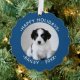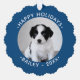 Create your own cute custom ornament featuring your pet photo and text on both sides. Easily add your dog/cat/furbaby photo, name, year, and message (Happy Holidays, Merry Christmas, Happy New Year,...) in the sidebar. The text will appear in curved white text on a blue border around your photo. Makes a fun stocking stuffer or gift tag for family pet lovers and a wonderful keepsake for you.