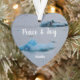 This heart-shape blue and white 2-sided Christmas ornament is decorated with a photo of floating icebergs near the Hubbard glacier in Disenchantment bay in Alaska where Hubbard glacier, a tidewater glacier, was actively calving. The second side of this keepsake souvenir ornament has room to add a family photo if desired.