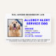 Allergy Alert Service Dog - Easily identify your dog as a working service dog, while keeping your dog focused and cut down on distractions while working with one of these k9 service dog id badges. Although not required, a Service Dog ID badge gives you and your service dog peace of mind and ease of travel without hassles and questions when seeking public access. Our Service Dog Id Badges are TSA compliant and have the United States Federal Laws on the back with ADA website and contact phone number. Customise with your Service Dog’s photo, name, handler’s name and city and state.