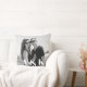 This custom keepsake throw pillow features a sample black and white photograph of a newlywed couple covering the entire front, which you can replace with your own photo or image of your choice. Two large monogram initials are printed in the bottom potion which you can personalise to include your own custom initials, name, or other text. It makes a wonderful, sentimental gift.