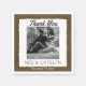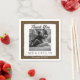 Rustic burlap wedding photo paper napkins- Personalised engagement photo in simple white square frame with torn look edges. Reads Thank You in black script above the photo and monogrammed names of bride and groom below with wedding date at the bottom. Faux shabby brown burlap background. Burlap wedding napkins go with rustic country wedding themes or barn wedding decor, outdoor weddings, wedding showers, rehearsal dinner decorations, etc. Note: All images are printed. No actual burlap or cloth. Matching burlap wedding decor and reception or bridal shower supplies and other wedding designs are in our Zazzle/angela65 shop.