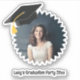 Your favourite photo and customised text highlight this personalised graduation cap cutout sticker.
