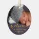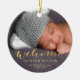 Custom Photo Baby Birth Announcement Gold Script Ceramic Ornament