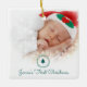 Personalise your own custom baby photo to this holiday ornament for baby's first Christmas, and add your baby's name in this cute whimsical script typeface. Make it an heirloom to last for years. This baby wears a Santa hat. dress your baby for the holiday to create your custom photo.