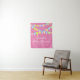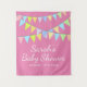 Custom photo backdrop for baby shower party. Cheerful design with coloured pennant flags on a string. Great for celebrations with friends and family. Add your own personalised text to celebrate your newborn girl or boy. Cute party supplies for kid's parties. Pink or custom colour background.