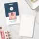 Easily customisable name badge, simply add your photos and type in your details to create a simple business design in White and Navy Blue colours for a clean professional look.