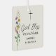 This floral Baptism photo keepsake ornament features wildflowers and a cross with stylish script typography on a soft cream background.