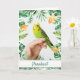 When someone adopts a pet bird from a shelter, this card will be a keepsake. Add a photo of the bird, or the person with bird and add custom text such as the bird species or name, as you congratulate them on their bird adoption. Tropical forest leaves and flowers add the greenery frame. The inside is always editable.