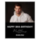 A poster for a 30th birthday party for guys. An elegant modern black background. Personalise and add your own photo of the birthday boy/man. The text: The name is white with a modern hand lettered style script. Tempates for a name, age 30 and a date.