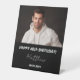 A welcome sign for a 40th birthday party. Personalise and add a photo, a name and age. A classic black background, white text.