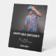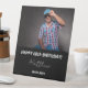 A welcome sign for a 60th birthday party. Personalise and add a photo, a name and age. A classic black background, white text.