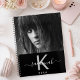 A chic black background. Personalise and add your own photo, a name, monogram letter and a year. The name is written in white with a large modern hand lettered style script with swashes. The monogram letter in grey. Perfect for school, work or organising your personal/family life. To keep the swashes only delete the sample name, leave the spaces or emoji's in front and after the name