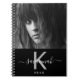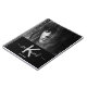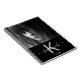 A chic black background. Personalise and add your own photo, a name, monogram letter and a year. The name is written in white with a large modern hand lettered style script with swashes. The monogram letter in grey. For school, work as a diary and journalling. To keep the swashes only delete the sample name, leave the spaces or emoji's in front and after the name