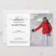 Send out stylish customisable birthday invitations. Replace the sample photo and text with your own to make it unique. The birthday party invite features the word "celebrate" in a black script font on a white background. On the back, a decorative painted pattern of scrolling white curves meet and diverge on a black background.