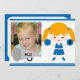 You can add your child's photo and all her party information to these cute and colourful cheerleading theme birthday party 5x7" invitations before ordering! Features a cheerleader with brunette hair and a blue uniform, a megaphone with your child's name, and her age on a pom pom!