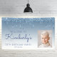 Welcome guests with this chic, glamorous 50th birthday party photo banner, featuring a sparkly blue faux glitter drip border and blue ombre background. Easily replace the sample image with a photo of the guest of honor. Personalize it with her name in blue handwriting script, with the birthday and date below in blue sans serif font.