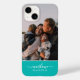 Blue Green and White Personalised Photo Script Name iPhone Case - Add your own photo to the picture template and full name to the chic text templates to create your own memorable Phone cover. Make a cute and thoughtful gift for mum, wife, girlfriend, etc. by adding a favourite family photo and her name. TIP: When picking a photo to add to the template try choosing a vertical photo that has the main subject in the lower two thirds of the photo. The upper left part of the photo will be cut out due to the phones' camera.