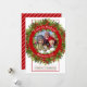Classic customisable greeting card with seasonal December winter holiday season berry garland & pine needles wreath on a white background. Customise with a photo of your choice and personalise with name and year date, and give your friends or family a personalised bottle of wine gift for the Holidays.