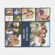 A personalised photo collage keepsake dark navy blue blanket for that perfect gift. Customise with nine photos of family, pets, memories, in memory of a loved one, special occasions, your photography, etc. and add one or two lines of text in simple white typography. The colours of the background and text can be edited in the design tool or contact us at juliehortondesigns@gmail.com for assistance.