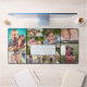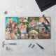 Brighten your workspace with this modern custom desk mat featuring a collage of 9 favourite photos of family, friends, pets, memories, etc., on a black background.