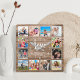 Custom Photo Collage Family Love Script Wood Square Wall Clock