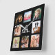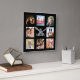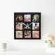 Custom photo collage family monogram name black square wall clock