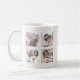 Create your own personalised 8 photo collage, coffee mug with your custom images on a simple modern beige background. The coffee mug face also features your monogram and name. Add your favourite photos, designs or artworks to create something really unique.