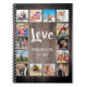Create your own personalized 14 photo collage notebook with your custom images on a rustic farmhouse style wooden plank background. The design also features your family name, established year and a "Love" handwritten script. Add your favorite photos, designs or artworks to create something really unique.